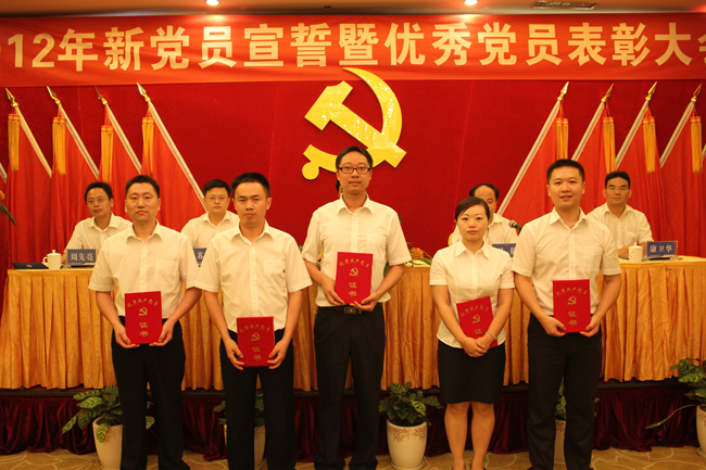 公司黨委書記楊國平作重要講話。他代表公司黨委向獲得優(yōu)秀黨員稱號的同志表示祝賀,向剛剛加入到黨的隊伍中來的新黨員表示熱烈的歡迎。楊國平董事長就創(chuàng)先爭優(yōu),進一步加強黨組織建設(shè),促進公司又好又快發(fā)展講了三點意見:一是抓好創(chuàng)先爭優(yōu),促進公司科學(xué)發(fā)展;二是加強黨員自身建設(shè),提升公司人才實力;三是加強黨風(fēng)廉政建設(shè),樹立黨員的良好形象。要求全體黨員以受到表彰的同志為榜樣,堅持黨的根本宗旨,堅持科學(xué)發(fā)展觀,振奮精神,同心同德,真抓實干,開拓創(chuàng)新,以爭創(chuàng)一流的精神狀態(tài)和卓有成效的工作業(yè)績來促進公司又好又快發(fā)展,為長株潭“兩型社會”建設(shè)和湖南的發(fā)展貢獻新的更多力量,以優(yōu)異的業(yè)績向黨的十八大勝利召開獻禮?! ?/p>
